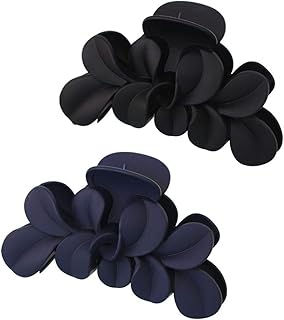 2 stücke Matte Hair Claw Clip Blatt Blume Kunststoff Hair Claw Clamp Stilvolle Haarspangen für Frauen (Blau, Schwarz)
