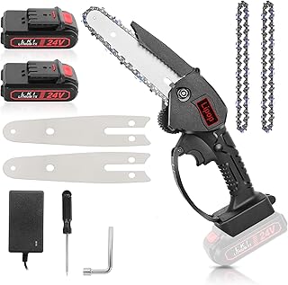 Lipop Mini Elektrische Kettensäge 6 Zoll, 24V Tragbare Kabellose Kettensäge mit 2 Wiederaufladbare Batterien und 2 Führungsplatten 6 Zoll, 2 Ketten für Garten Hof Baum Ast Holzschneiden