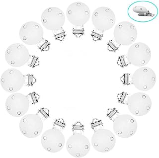 VOARGE 16 hölzerne Schnullerclips, Babyschnullerclips, 44 mm hölzerne Schnullerkettenclips für Babys und Kinder, hölzerne Schnullerclips für Kinder-Cartoons, weiß