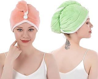XZP Quick Dry Hair Towels Wrap Turban für Frauen Langes Dickes lockiges Haar Schnell Trocknend Handtücher Kappe Insistant in 5 Minuten Stark Saugfähig Nass Handtuch (Fresh Pink und Green Towels)
