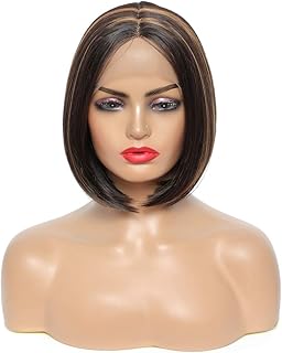 Sylhair 9'' Synthetische Spitze Front Perücken Ombre Highlight Kurze Gerade Bob Perücke für Frauen Volle Transparente Spitze Perücke