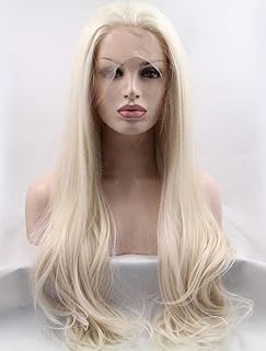 Tsnomore Blonde lange seidige gerade synthetische Spitze-Front-Perücke