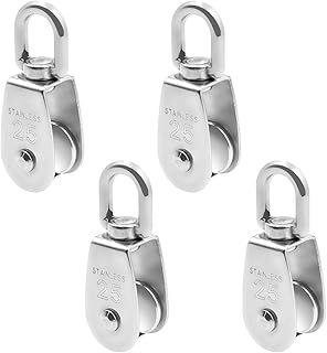 4 Stück 25 mm Edelstahl Einzel Pulley Block Crane Swivel Haken Einzel Pulley Rollen silber Ton