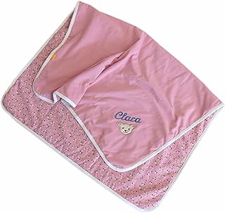 Steiff Babydecke mit Ihrem Wunsch-Namen Bestickt rosa pink Nectar 90 cm x 60 cm als Namensdecke personalisiert und mit Buntem Blümchen-Print auf der Rückseite