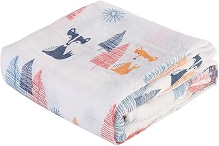 FAMKIT Babydecken, 1 Stück Unisex Baby Musselin Wickeldecke Cartoon Animal Print Neugeborene Weiche Empfangsdecke Wickel für Jungen Jungen Mädchen 47 x 47 Zoll