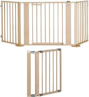 Geuther - Konfigurationsgitter, Set bestehend aus Türelement, Verlängerung, Winkelelement mit Fuß, Wandanschluss, Holz, natur/silber, 100 - 224 cm