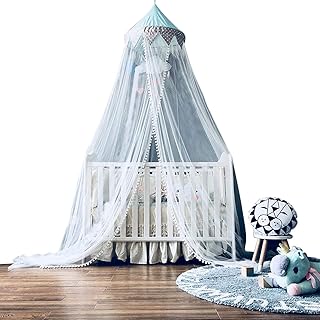 Dyna-Living Baby Kids Moskitonetz Princess Betthimmel 3 Schichten Spitze Rüschen Dome Blau
