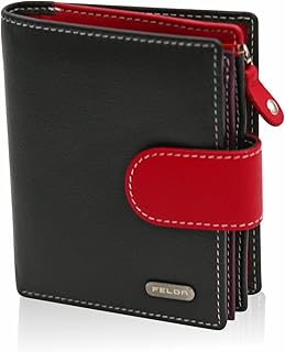 Damen Geldbörse aus Echtleder mit 10 Fächern - RFID-Blocker - Kartenfächer, Münzfach Wallet RFID-Blocker in Schwarz & Rot