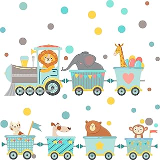 greenluup Wandtattoo Kinderzimmer Wandaufkleber Deko Zug - Kinder Wandsticker Wandaufkleber Kinderzimmer Mädchen & Jungen Eisenbahn mit Tieren und Punkten in mint