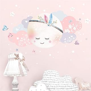 Little Deco Wandsticker Kinderzimmer Mädchen Mond & Wolken I L - 60 x 31 cm (BxH) I Wandtattoo Babyzimmer selbstklebend Wandaufkleber Sterne Kinder DL268