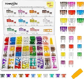 TOMORAL Kfz-Sicherungen, sortiertes Zubehör, Micro-Mini-Standard-Flachsicherungen (2 A/3 A/5 A/7.5 A/10 A/15 A/20 A/25 A/30 A/35 A/40 A) für Wohnmobil, Sicherungshalter, Automobil-Ersatzsicherungen