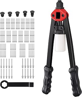 Nietzange Set Proster Nietpistolen Set 13 Zoll Hochleistungsnietpistolen Handnietgerät Funktioniert mit 200 Stücke Nieten aus Aluminiumstahl und Edelstahl 5 Nasenstücke