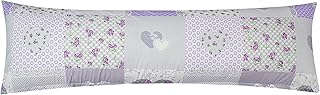 Baumwoll Renforcé Seitenschläferkissen Bezug 40x145cm - Landhaus Herzen Rosen in grau, Flieder und grün - 100% Baumwolle Stillkissenbezug (422-4)