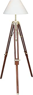 Stehlampe Stativ Lampe,Schirmlampe,Lampenschirm,max. Höhe 146cm Holz/Messing,Dreibein